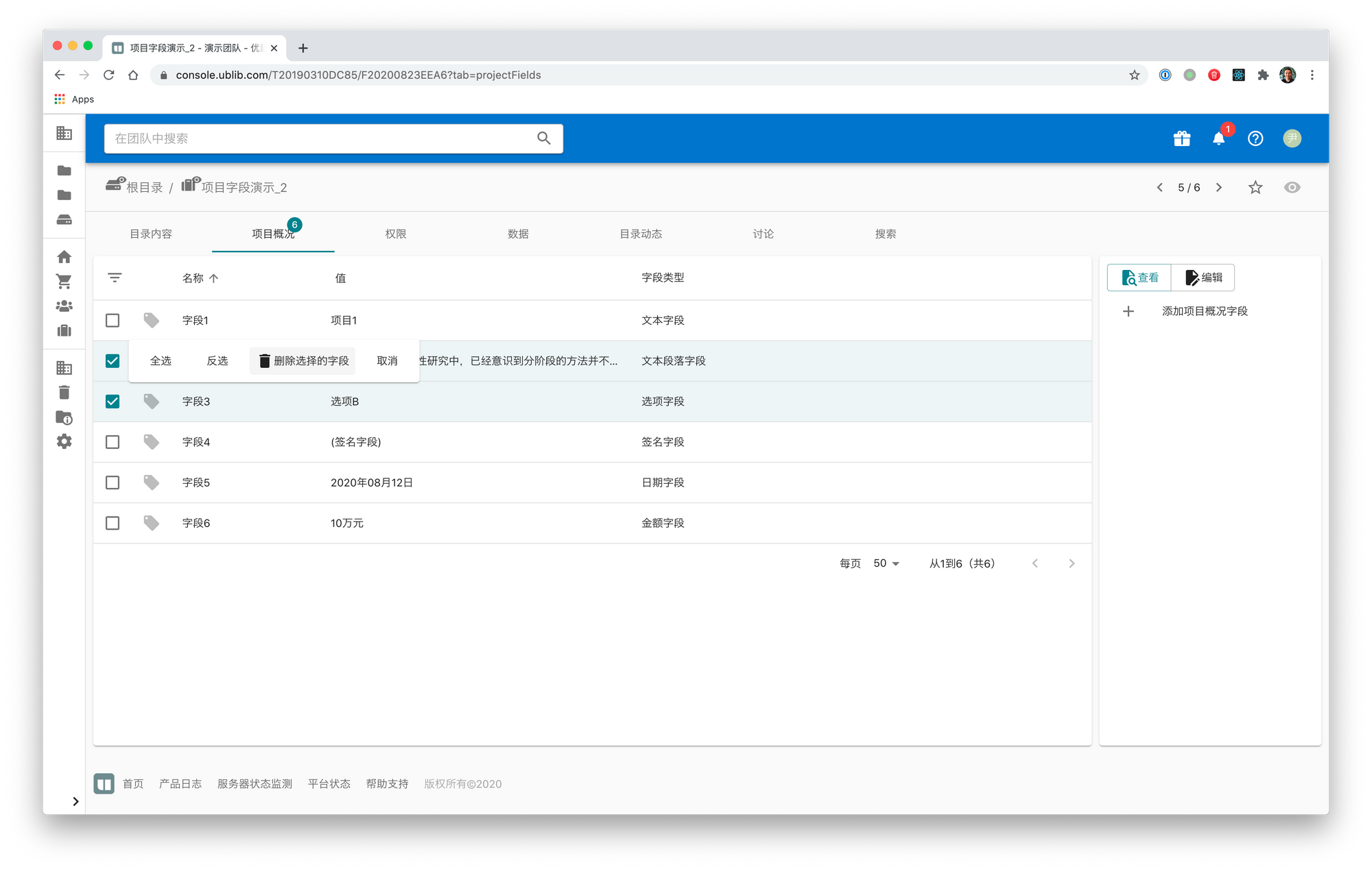 2020年8月23日 1 min read 200823 项目字段删除操作 现在可以对“项目概况”里的字段(原“项目字段”)进行删除操作了,操作时只需点击表格左上角的图标进入选择模式后,选择要删除的项目字段,然后在弹出的对话框里确认操作即可。 Enjoying these posts? Subscribe for more Subscribe now Already have an account? Sign in