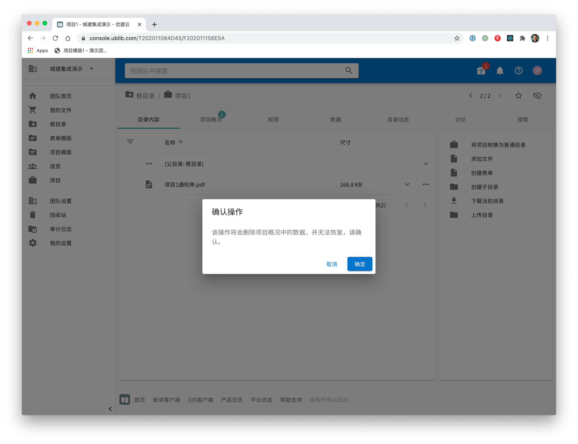 2020年11月16日 1 min read 201116 取消设置为项目 我们加入了取消设置项目的操作,用于在误操作将目录设置为项目的情况下使用,在目录内点击“将项目转换为普通目录”可进行操作。转换会删除所有“项目概况”里所记录的数据,但是不会删除目录内已有的表单和上传的文件。如果项目内的表单有引用项目概况的值,转换后,被引用的概况字段会被删除,但是表单中已经引用的值不会丢失。但是因为源概况字段已不存在,将无法对表单中的值进行修改,除非重新创建项目和概况字段。 Enjoying these posts? Subscribe for more Subscribe now Already have an account? Sign in
