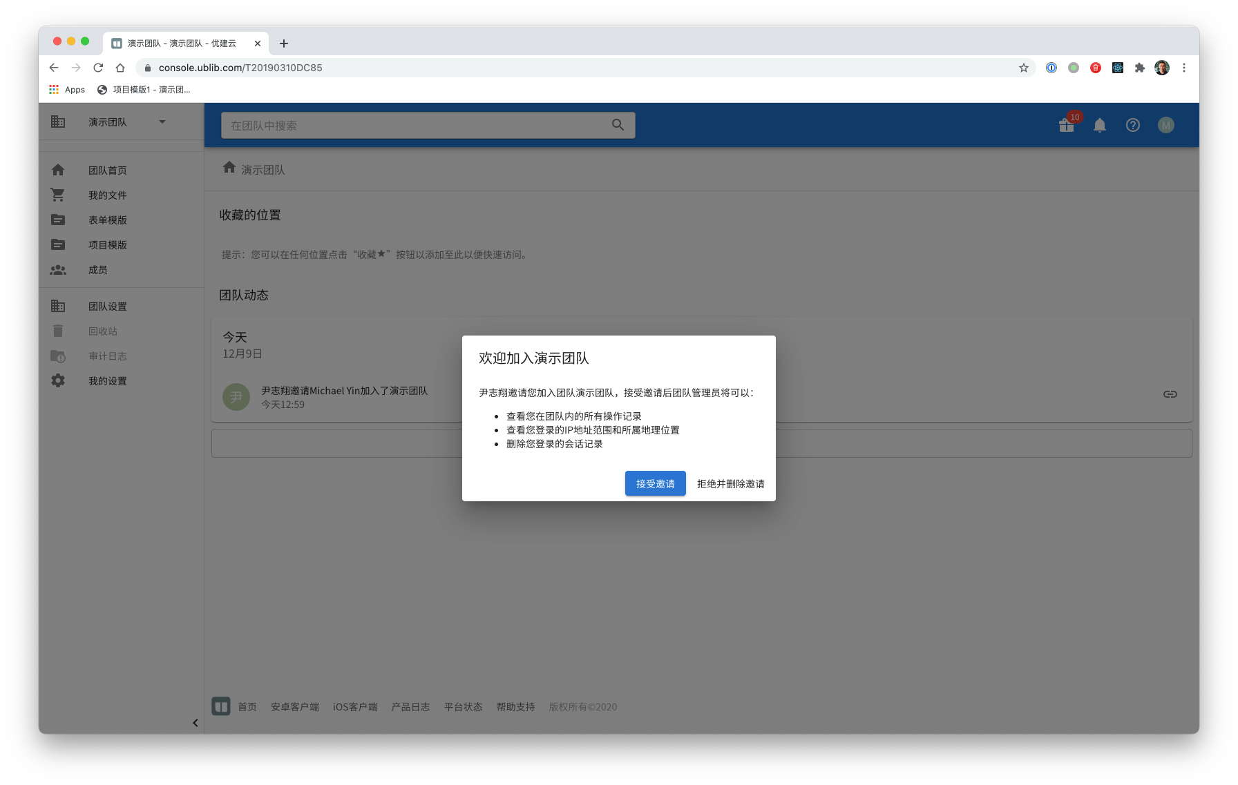 同时我们调整了邀请新成员的流程,邀请者邀请新成员后,新成员第一次切换到该团队时将需要确认接受邀请,以授权团队管理员审查和管理自己的登录会话记录。