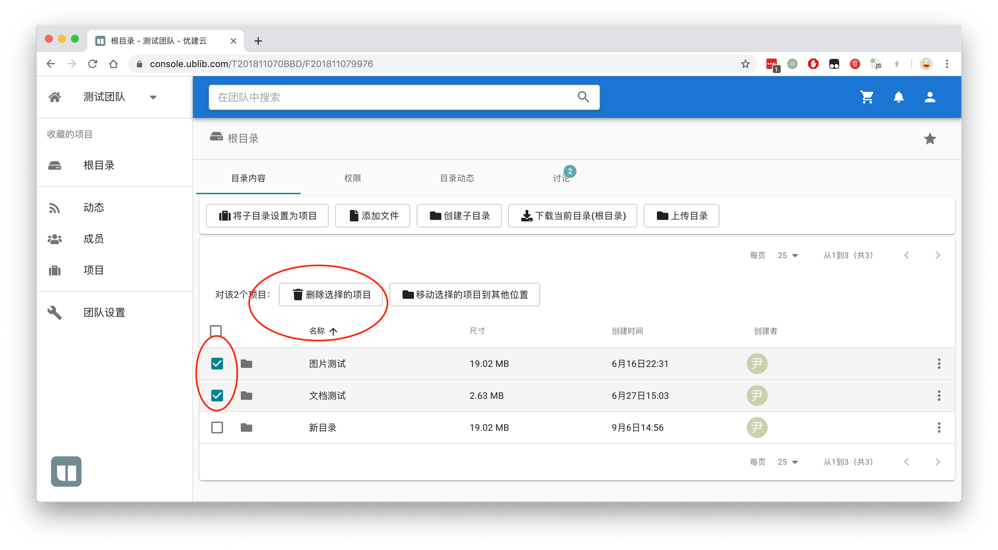 在任何目录内,可以批量选取多个或者全部子项进行操作,目前实现了两个批量操作:“删除”和“移动到其他位置”。