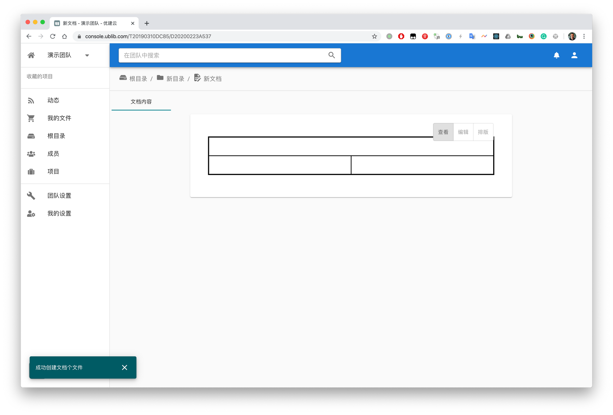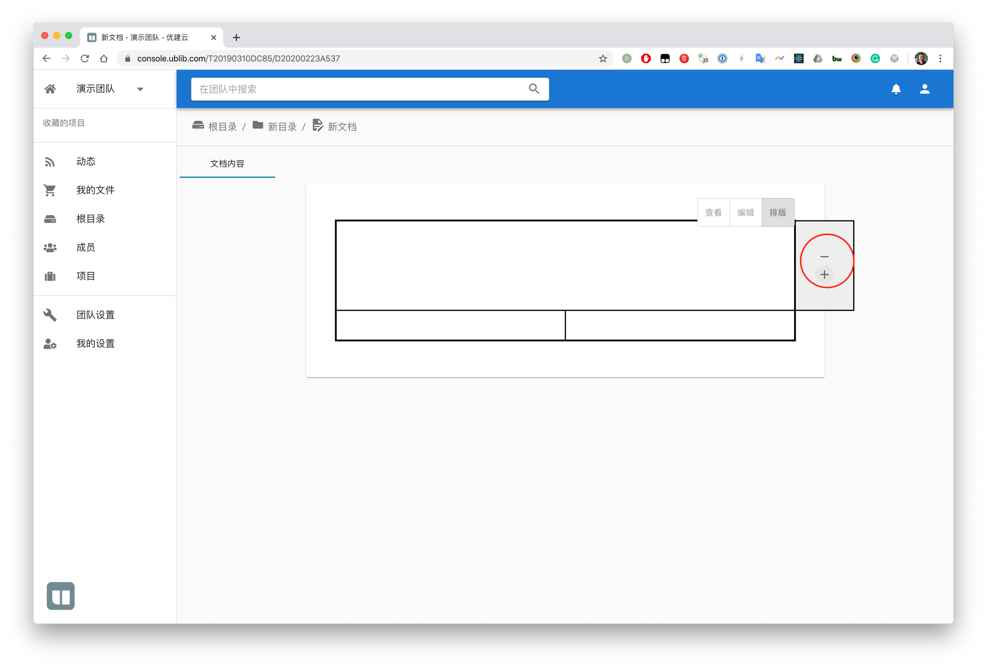 2020年2月24日 2 min read 200224 文档表单基础排版操作 本次更新发布了文档最基本的排版功能,文档和现有的“文件”和“目录”一样,储存于现有目录系统之中,并且受现有目录权限的控制(查看、修改和删除权限)。在有“创建”权限的目录里可以创建一个文档创建文档时,可以选择新文档的类型。目前只有“表单”类型的文档,未来计划支持更多的类型,并会支持单个文档内包含多个多种类型的组件,例如表单,多行表格,标题,签名区域等。创建文档后将会跳转到新创建的文档内。悬浮鼠标到表单组建上会显示模式切换按钮,切换到排版模式后可以进行排版的编辑。在排版模式下,可点击每列的底部或者顶部插入新的横向行。在每个单元格的左边或右边点击可插入新的单元格。点击每个横向行右侧的加号或减号按钮可以调整该行尺寸。点击单元格内的加号和减号也可调整单元格在行内的所占尺寸的大小比例。点击单元格内的删除按钮即可删除该单元格(操作之前会弹出对话框确认) Enjoying these posts? Subscribe for more Subscribe now Already have an account? Sign in