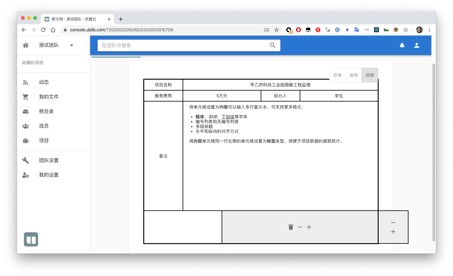 本次更新发布了文档单元格内内容的编辑功能,同时在新创建文档时将会生成一个单元格的简单示例。