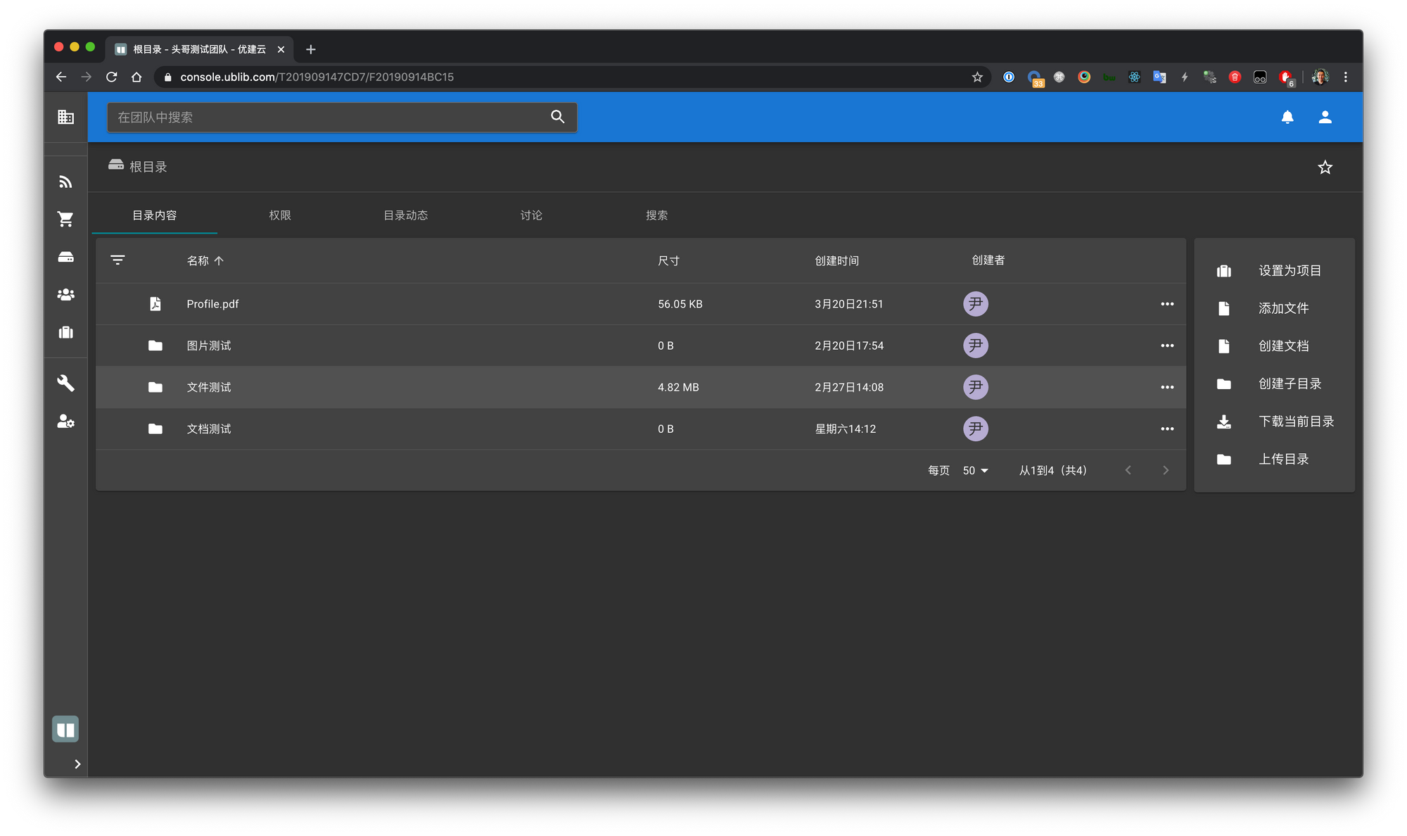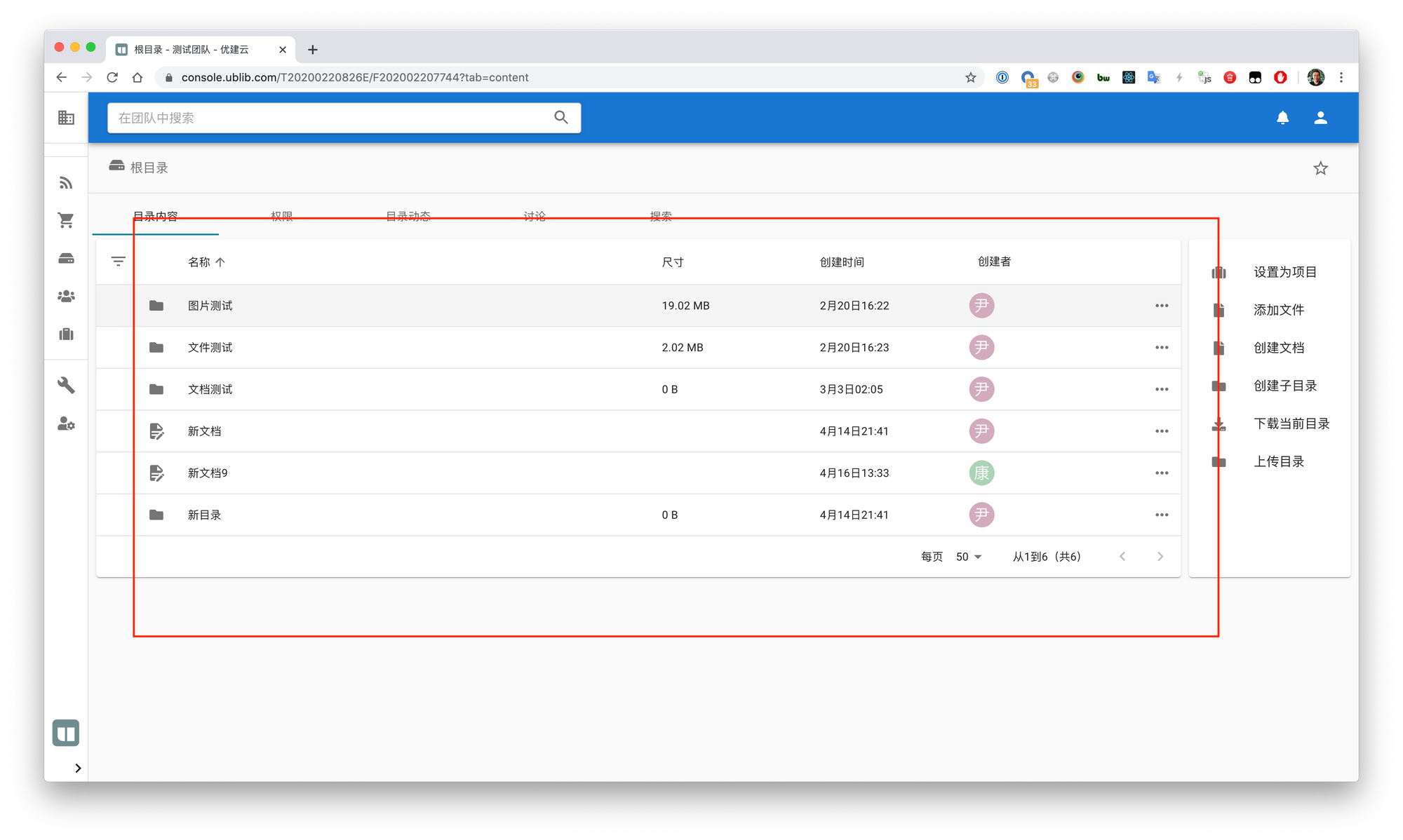 几个高频率使用界面使用了新的表格组件:目录的“内容”和"搜索“标签页,团队搜索结果页面。新的表格组件表头更加紧凑,并且渲染时占用的系统资源也显著更小。