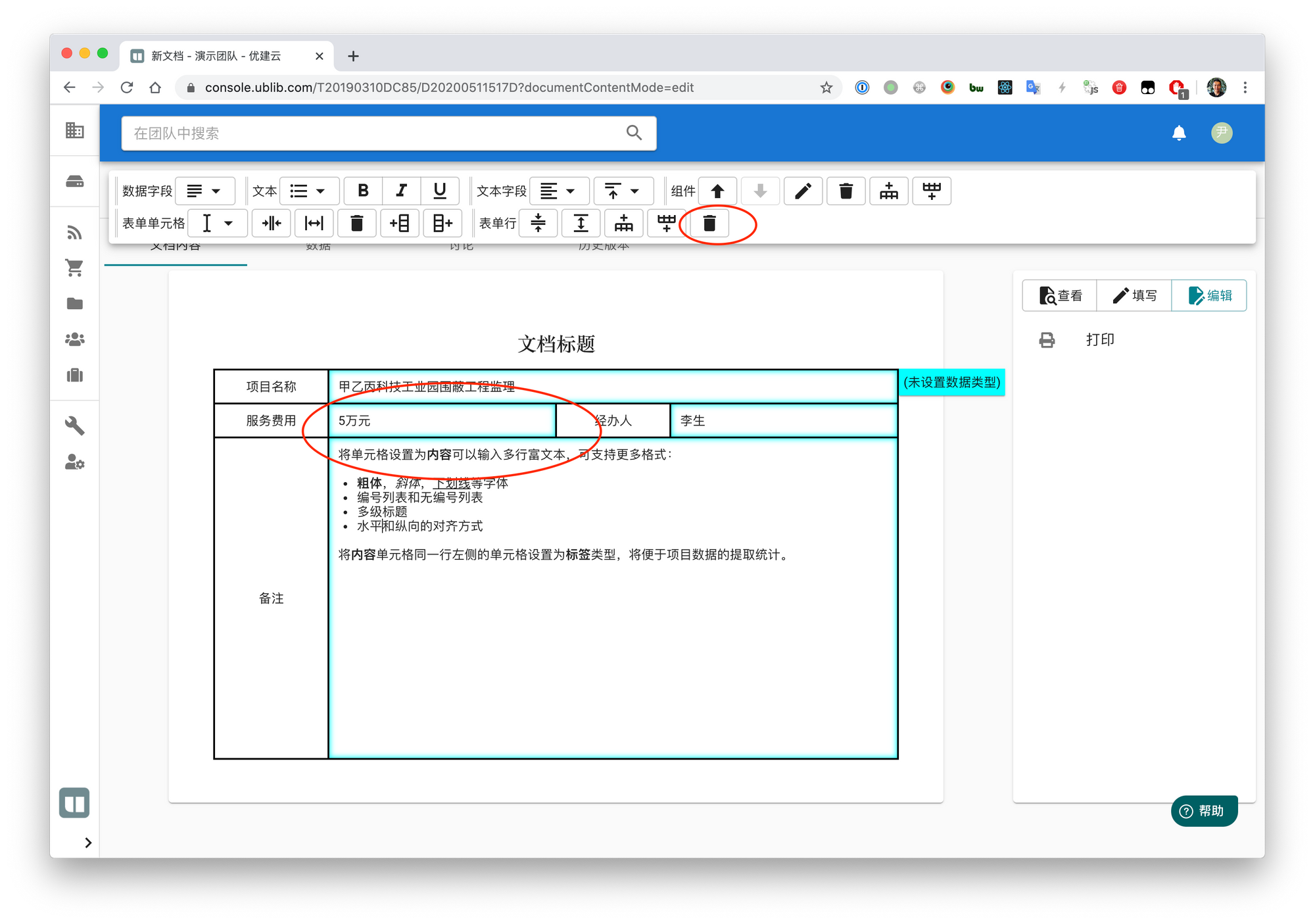 2020年5月11日 3 min read 200510 文档历史修订记录等 本次发布包括以下更新:增加对文档修改历史版本的记录和查询对表单和多行表格内数据的分类增加表单删除整列的操作多行表格中点击表格主体时可以对列进行操作多行表格中对行进行删除的操作还包括以下问题修复:在小屏幕上导航栏的文字不显示的问题表单标签编辑后内容没有保存,刷新后复原的问题对文档的修改会触发系统记录修订版本,并生成动态,目前由于对文档的所有操作都会实时保存而不需要单独的“保存”操作,对文档进行修改后,一分钟后才会生成修订记录,并将所有操作整合成一条动态。修订版本将以PDF导出的形式保存,已做参考,可以对修订版本进行预览或下载预览文档修订版本时查看的是缩小的图片预览。点击包含数据的组件(表单或多行表格)后点击组件设置即可修改该组件包含数据的类型名(目前支持任何字符串)示例,在同一个文档中制定各个数据组件的分类在文档的数据标签中,两个组件中提取的数据将分开显示表单内可以对表单行直接进行整行删除的操作,不再需要依次删除所有单元格表格内激活主题单元格时也可以进行对相应列的操作,而不再需要点击列头进行操作新增了对表格行的删除操作 Enjoying these posts? Subscribe for more Subscribe now Already have an account? Sign in
