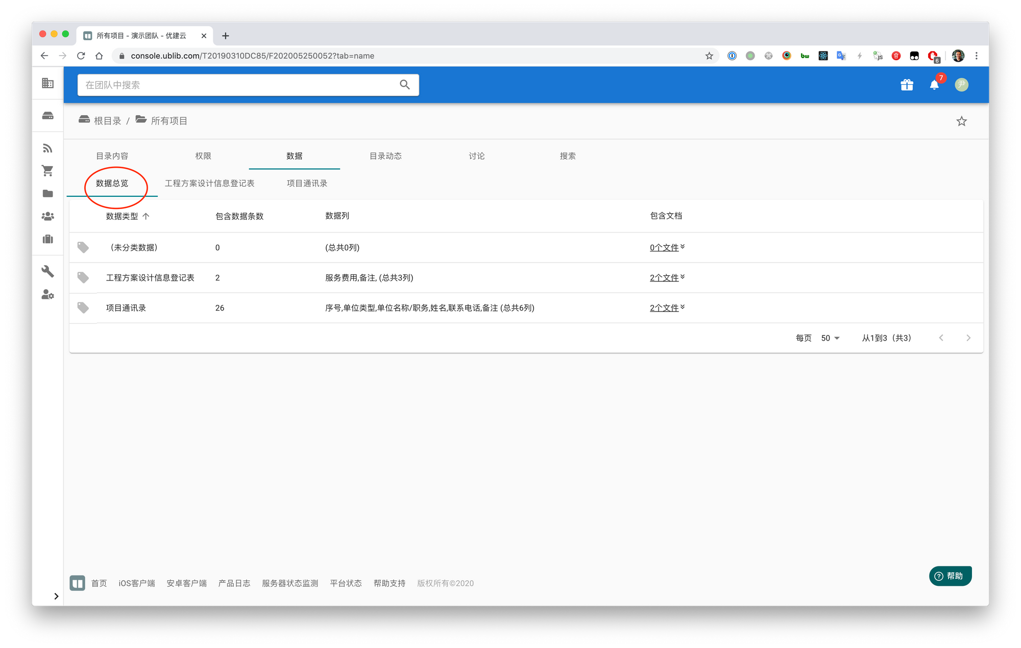 在数据标签内增加了数据总览标签,用于显示未分类的数据以及所有已分类的数据的条数、数据列和包含数据的文档。