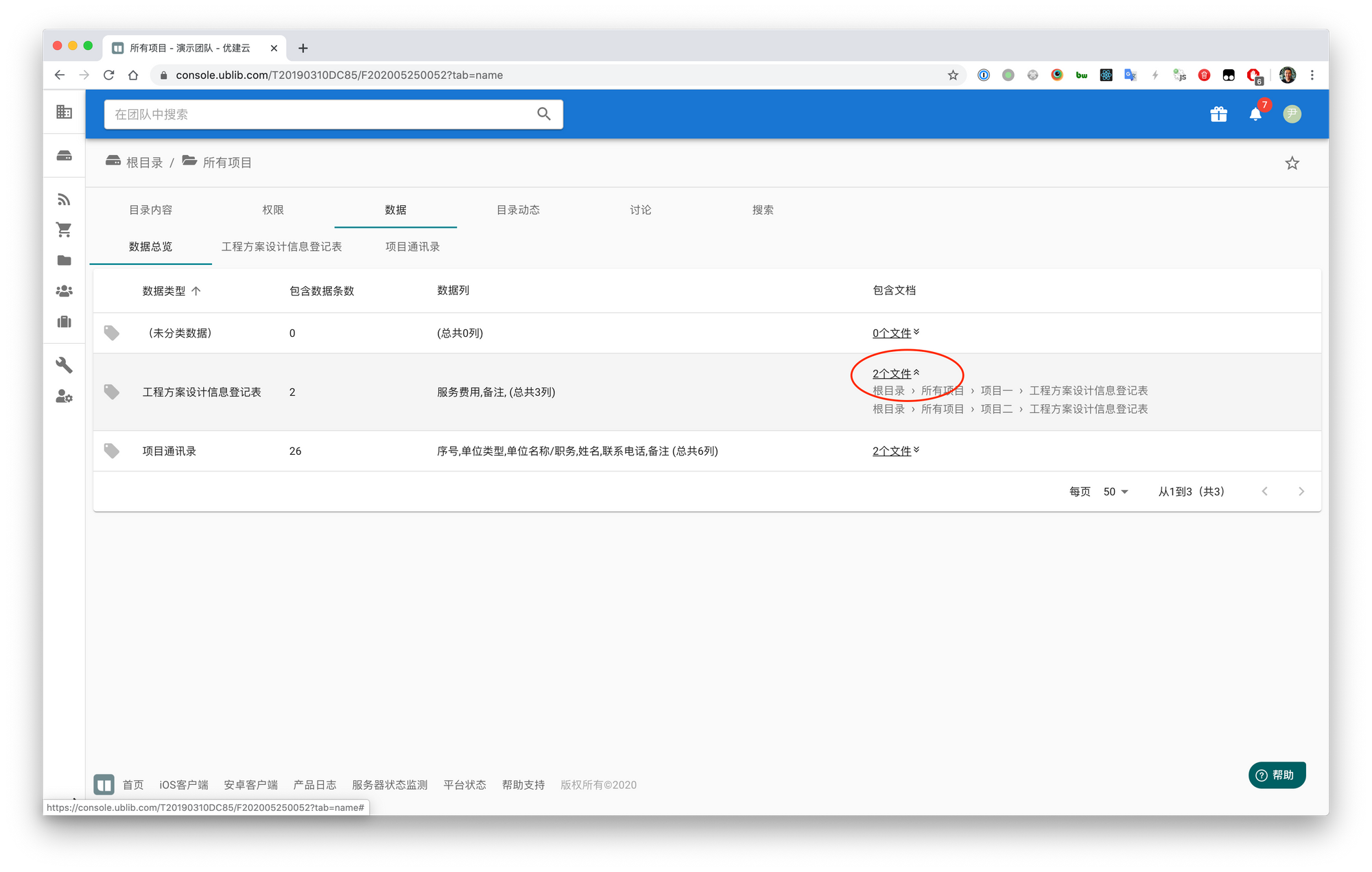 本次更新增加了目录的“数据”标签,用于展示目录内以及所有子目录内的文档包含的数据汇总。