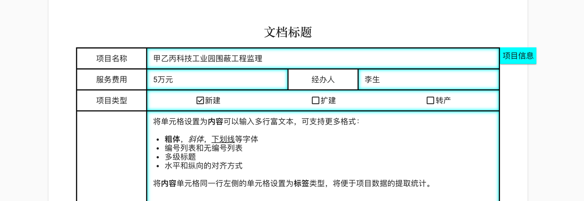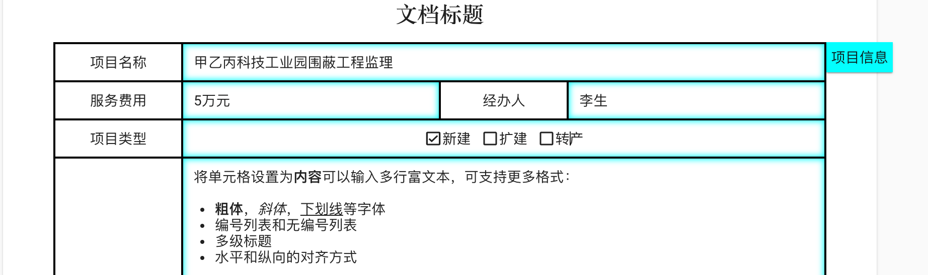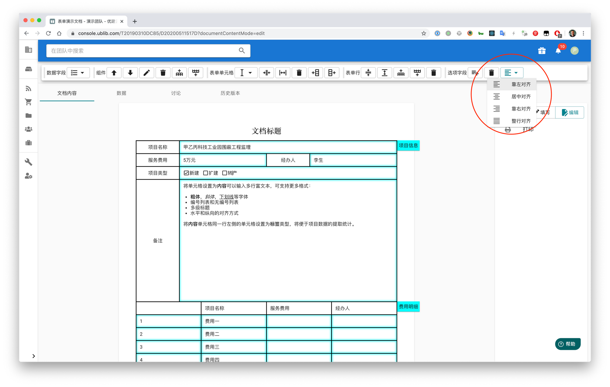 其次增加了“选项字段”的水平对齐功能,可以选择向左、居中、向右和整行对齐。