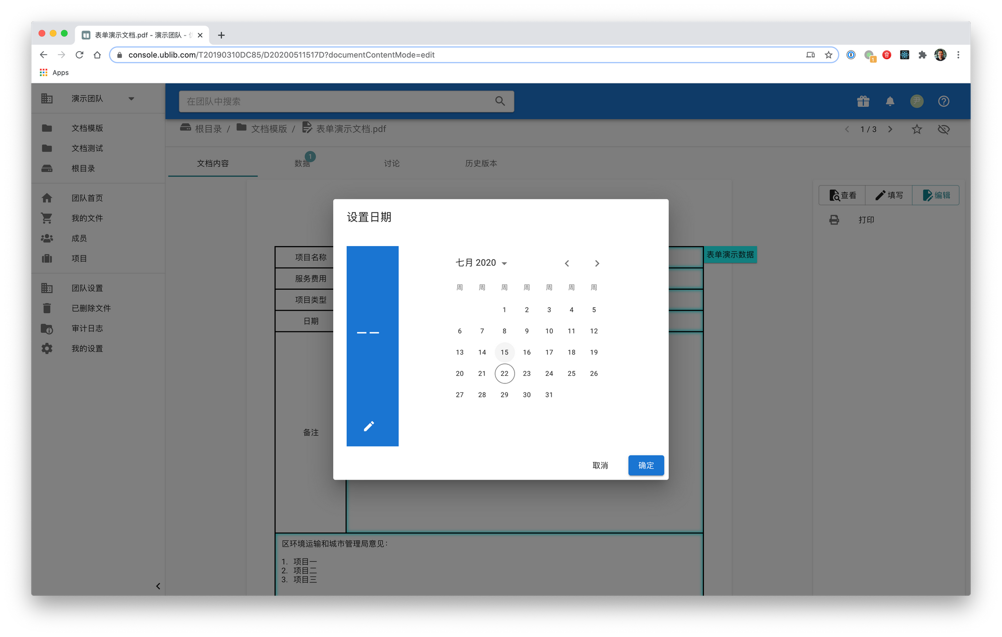 2020年7月22日 1 min read 200722 日期类型数据字段 我们加入了一类新的数据字段“日期字段”,在文档或项目字段处,可设置对应数据字段为日期字段。设置为日期字段后,可点击工具栏里的“设置日期”按钮打开日历控件进行更改日期,或使用“清除日期”按钮清除已设置的值。设置日期按钮日历控件 Enjoying these posts? Subscribe for more Subscribe now Already have an account? Sign in