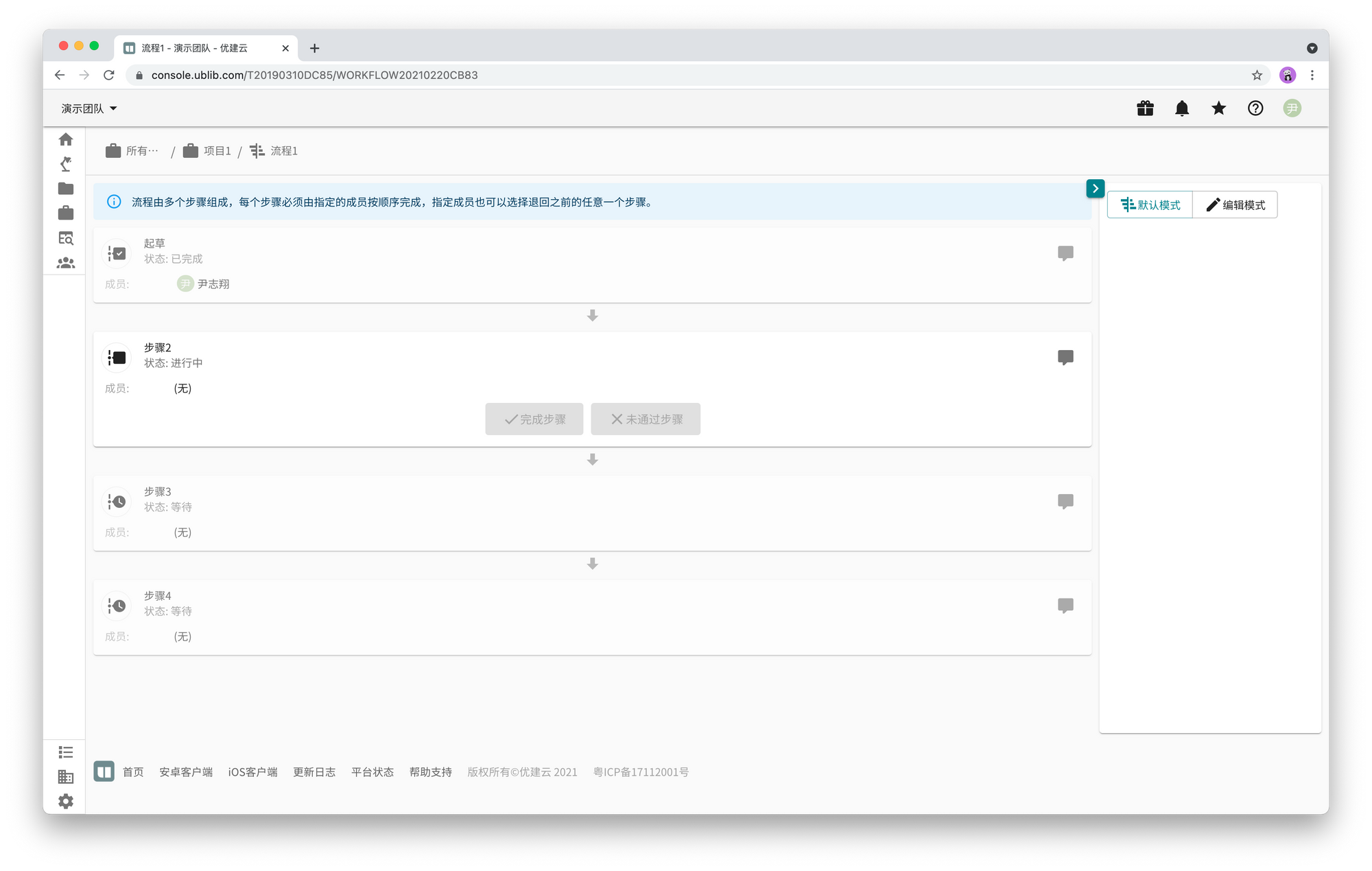 2021年6月28日 1 min read 210628 流程存储于项目之下 我们调整了流程功能,使之存储于每个项目之下,这样创建流程时将不再需要特定的文档或表单进行支持,以后会再支持将流程中的步骤和一个或多个表单/文档进行关联。现在创建流程时,需要在项目界面的项目流程标签 页进行操作。查看单个流程详情或进行操作时,点击流程卡片右上角的查看按钮即可进入该流程的详情页面: Enjoying these posts? Subscribe for more Subscribe now Already have an account? Sign in