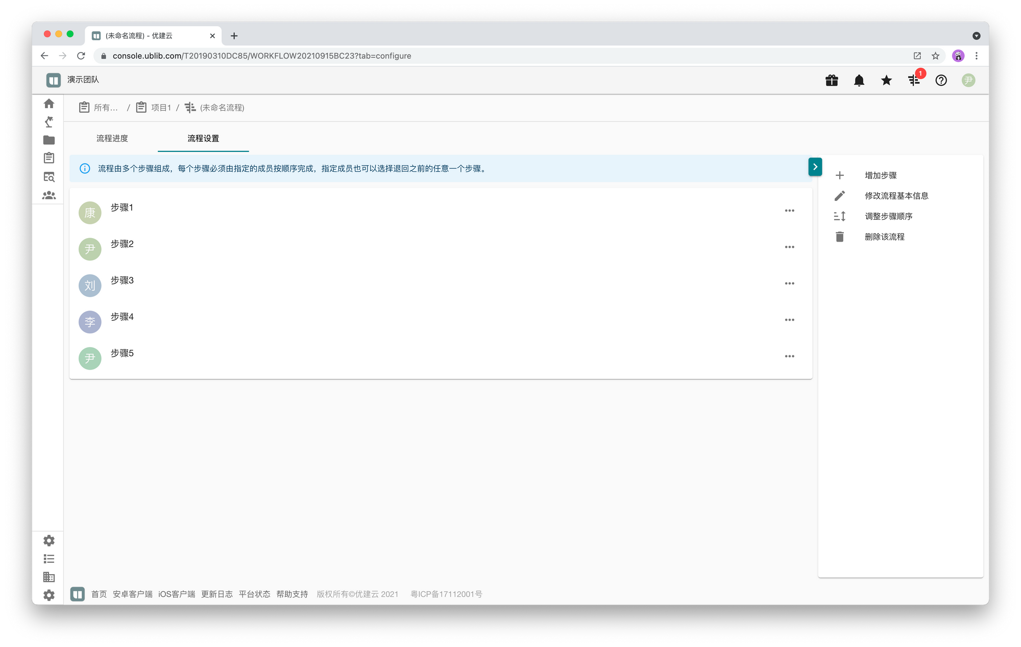 2021年9月22日 1 min read 210922 流程更新、增加处理意见 我们更新了流程功能,现在创建流程时可以指定一个整个流程的名称(可以留空),创建后会跳转到流程的设置界面以创建更多步骤并指定负责人。流程设置界面在完成步骤或未通过步骤的情况下都将需要填写一个意见备注,用以之后查阅。现在每个步骤变为待处理状态时,才会对对应负责人发送通知,您也可以设置通过手机短信、邮箱、或移动端App接收通知推送。此外我们还增加了一个右侧栏,用以显示所有待您处理的流程,供快速访问。 Enjoying these posts? Subscribe for more Subscribe now Already have an account? Sign in