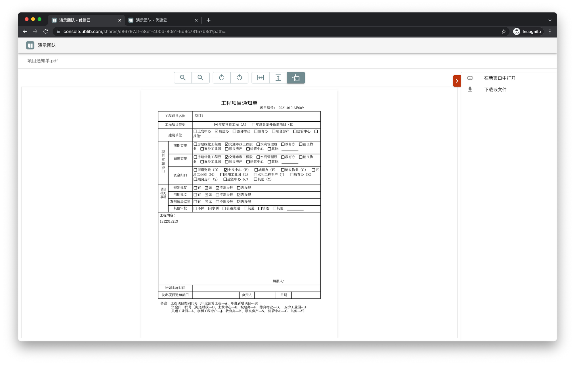 分享的表单将可以以渲染成的PDF文件的形式查看。