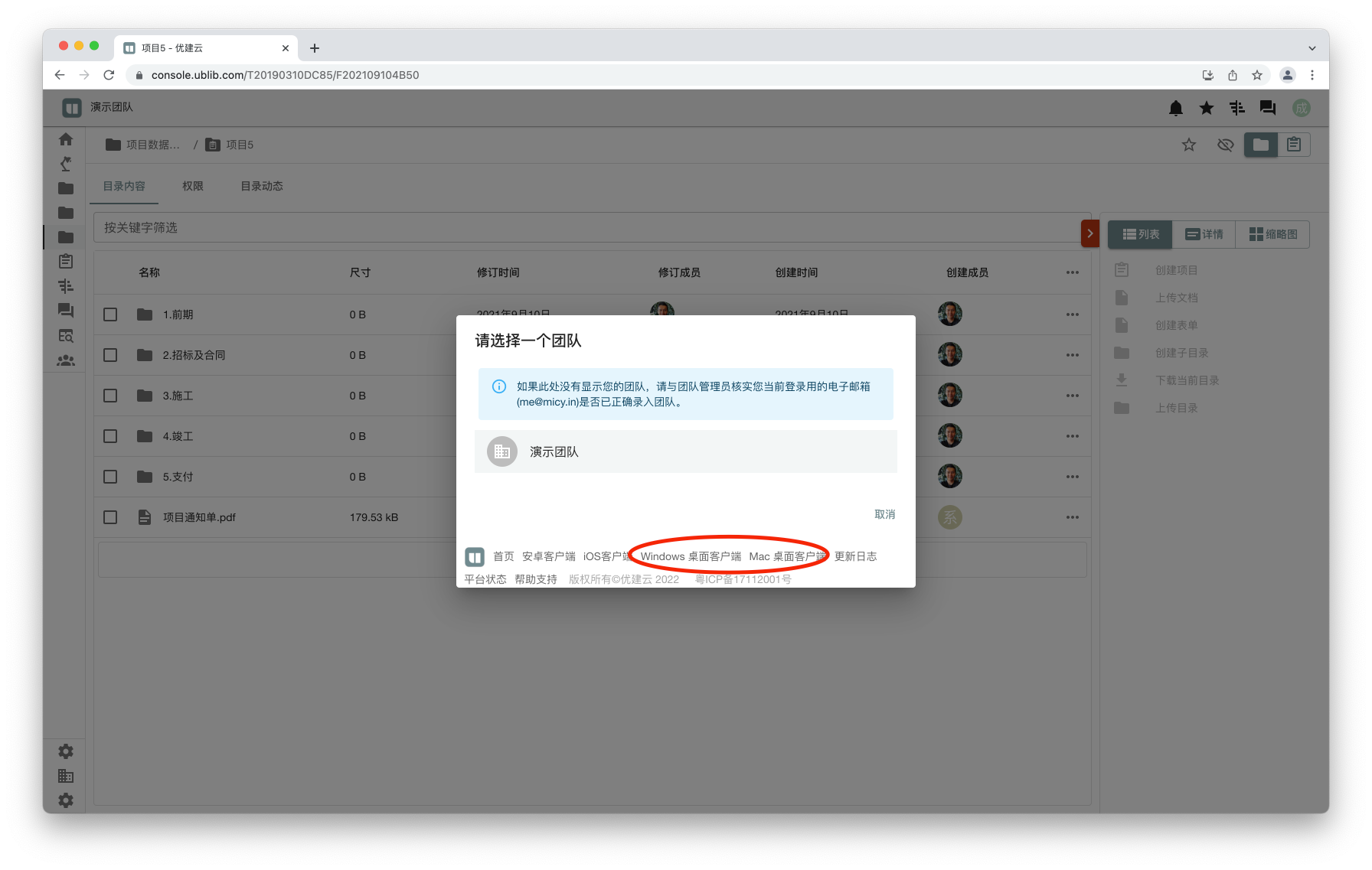 我们发布了用于Windows和MacOS的优建云桌面客户端,目前桌面客户端可用于备份整个团队里或指定目录内的文件。