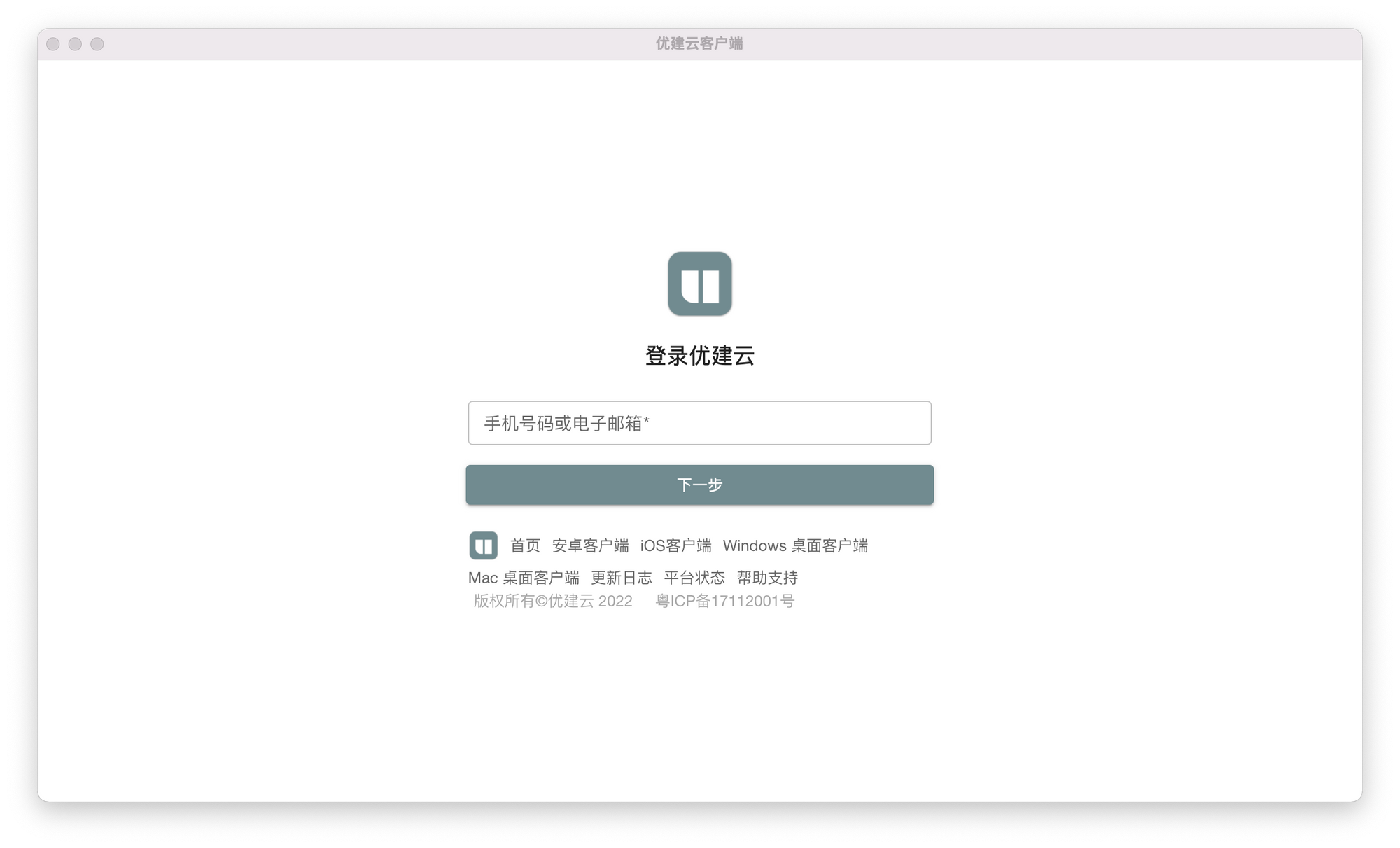 安装客户端后,与Web界面一样,可以通过手机号码和电子邮箱登陆,并切换团队。