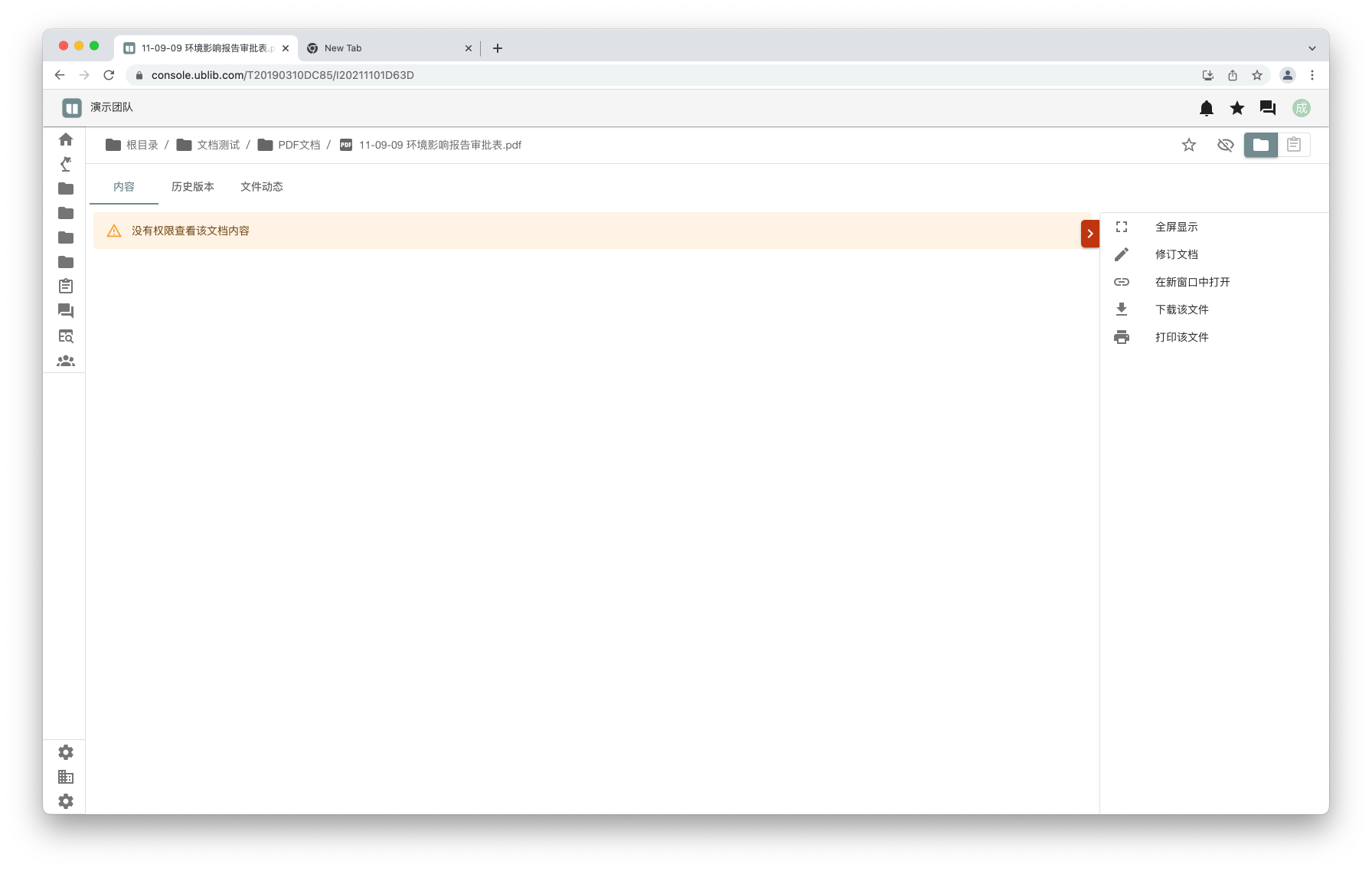 2022年2月21日 1 min read 220221 浏览权限 本次更新加入了浏览权限并使查看内容权限设置可以关闭,这样就可以邀请成员加入只允许浏览但不允许查看文档或表单内容的目录。仅有浏览权限的用户在查看文档或表单时会提示无权限查看。但是可以浏览文档或表单的相关信息,包括尺寸、修改和创建记录、动态。 Enjoying these posts? Subscribe for more Subscribe now Already have an account? Sign in