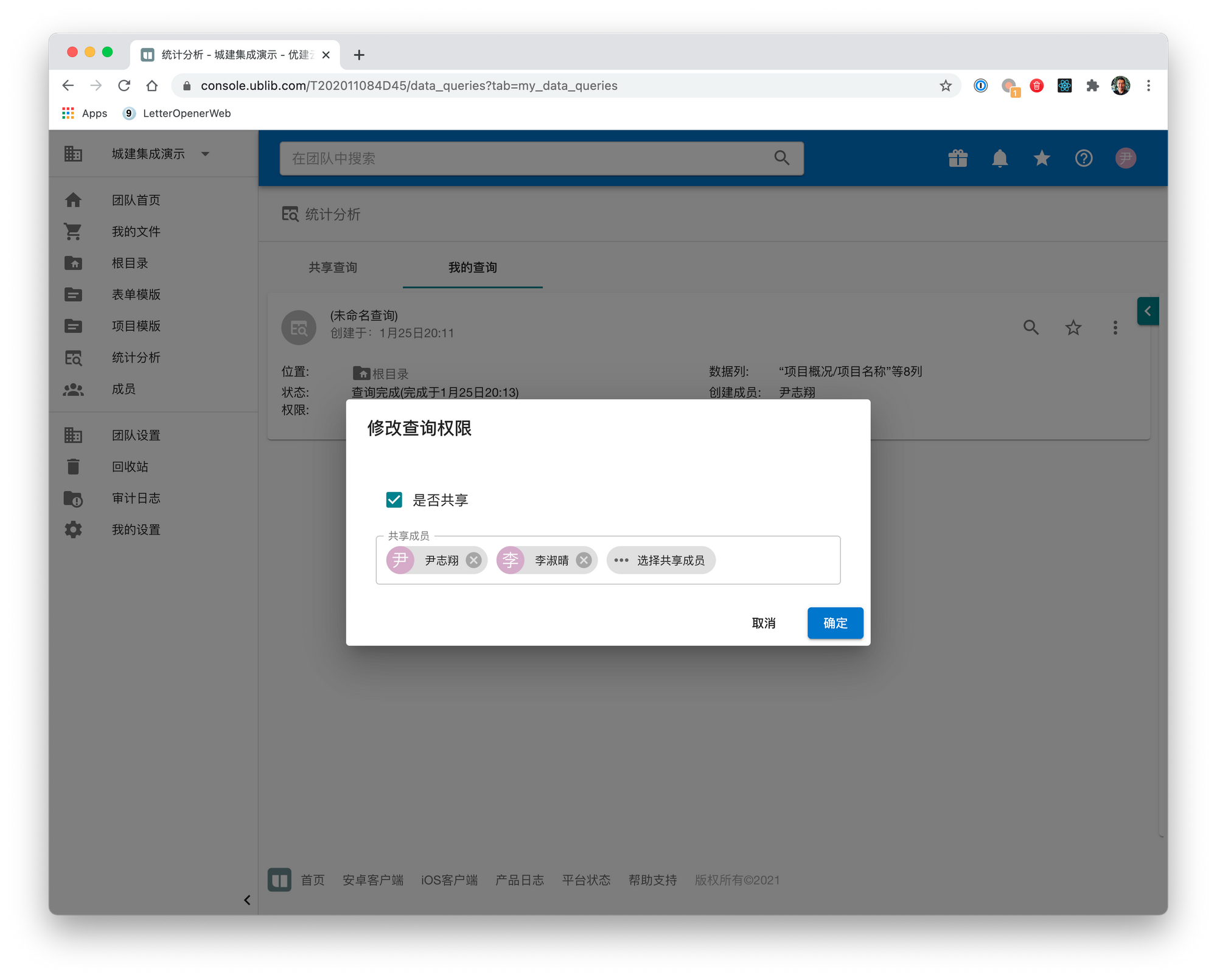 2021年2月5日 1 min read 210205 共享查询 本次更新发布了数据查询的权限(共享查询)功能,这样拥有权限的成员就可以将自己创建的查询设置为共享,给团队里的其他成员查看了。没有管理共享查询权限的用户只能对共享查询其中的数据进行查看,无法执行或修改查询的设置。点击修改查询权限将查询设置成共享查询并设置共享用户共享查询将对所有用户可见 Enjoying these posts? Subscribe for more Subscribe now Already have an account? Sign in